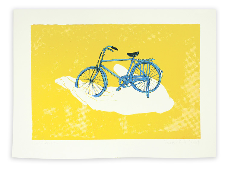 The difference of scale between the hand and bike reflects the artist’s style combining the real and surreal. The classic 1980s China-style bicycle also brings the memory of the old days back. An important part of this artwork is to express the idea of environmental protection and the importance of a healthy lifestyle. The world nowadays is facing serious pollution and energy issues; rapidly increasing cars are making the world become smaller, the sky darker, and people lazier and more unhealthy. Riding bikes rather than driving cars is an environmentally conscious way to save energy, reduce pollution and also exercise. For being friends with the earth, the back-to-natural lifestyle is definitely worth trying."